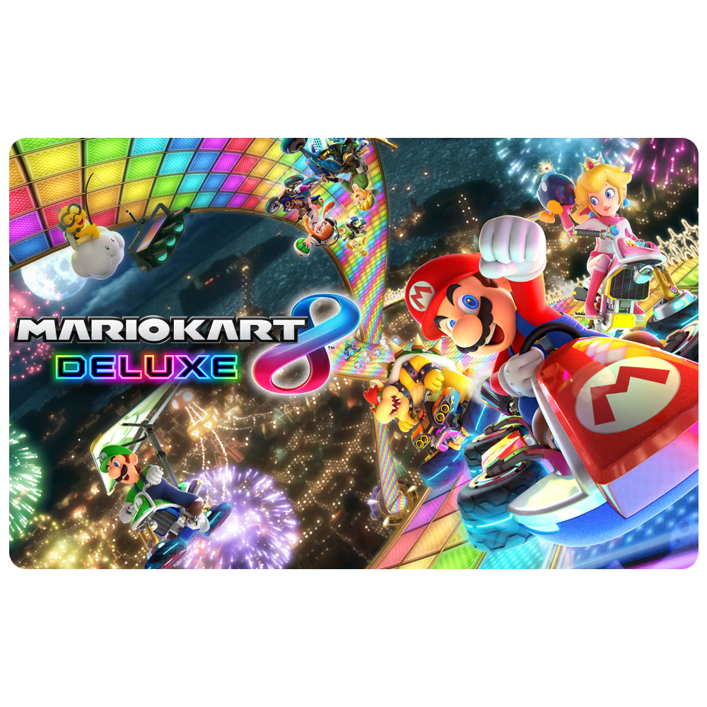 Acelere em Mario Kart 8 Deluxe no Nintendo Switch. Adquira créditos da eShop na CoinsHub com entrega imediata para garantir o jogo e as pistas extras com total segurança.